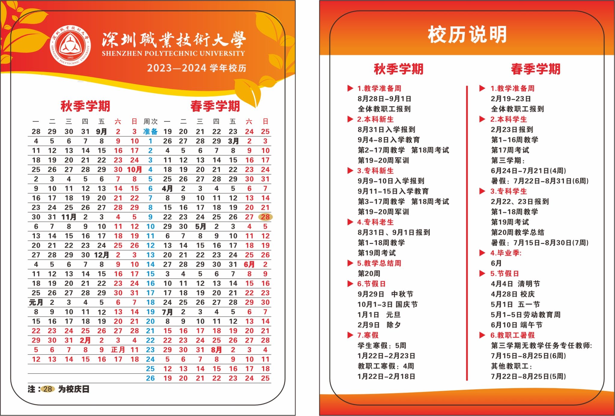 2023-2024学年校历
