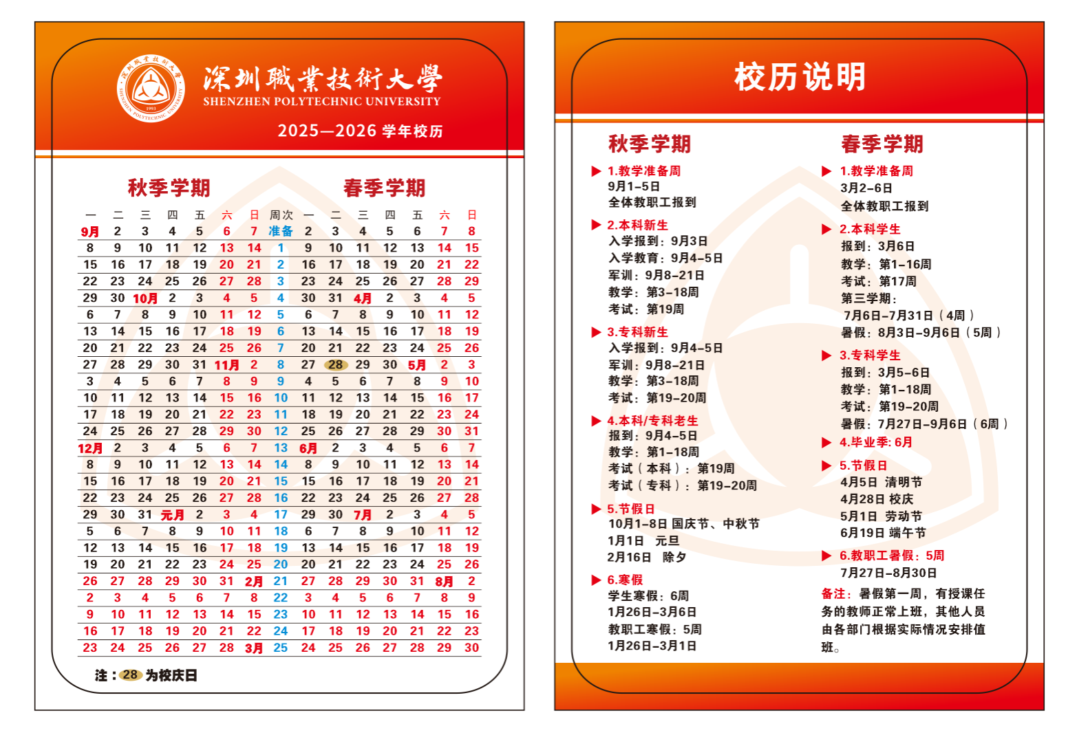 2025-2026学年校历